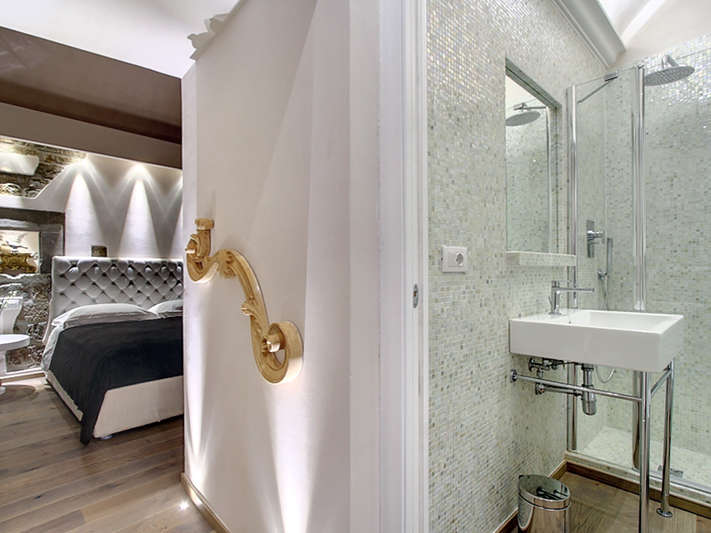 L’essenzialità del design e l’accuratezza delle scelte cromatiche e dei materiali creano un’atmosfera magica: mosaico, parquet,travertino, pietra serena, legno naturale. Intimo e romantico, chiunque desideri trascorrere un soggiorno indimenticabile potrà vivere l’emozione di avere una casa nel cuore più autentico di Firenze.